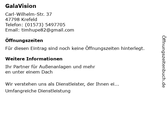 | Öffnungszeiten GalaVision in Krefeld anzeigen | |