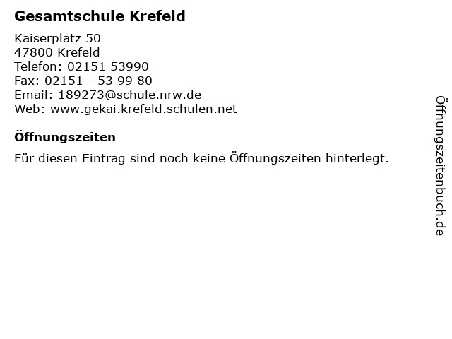 | Öffnungszeiten Gesamtschule Krefeld in Krefeld anzeigen | |