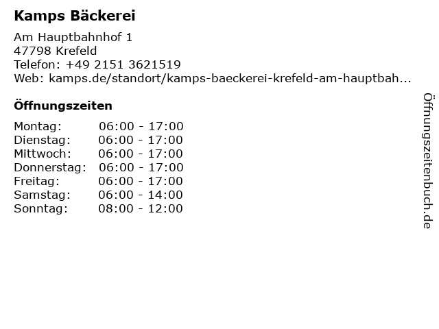 | Öffnungszeiten Kamps Bäckerei in Krefeld anzeigen | |
