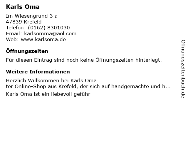 | Öffnungszeiten Karls Oma in Krefeld anzeigen | |