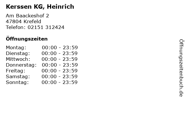 | Öffnungszeiten Kerssen KG, Heinrich in Krefeld anzeigen | |