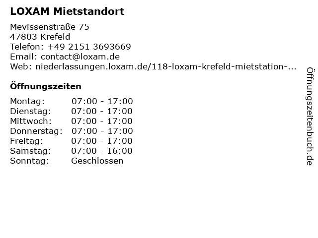 | Öffnungszeiten LOXAM Mietstandort in Krefeld anzeigen | |