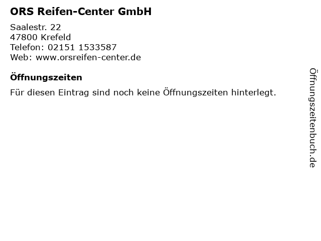 | Öffnungszeiten ORS Reifen-Center GmbH in Krefeld anzeigen | |