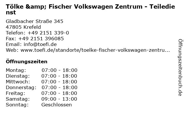 1 Tölke & Fischer Volkswagen Zentrum - Verkauf (Entfernung: 0,00 km) Gladbacher Straße 345, 47805 Krefeld 2 Tölke & Fischer Volkswagen Zentrum - Service (Entfernung: 0,00 km) Gladbacher Straße 345, 47805 Krefeld 3 6 |
