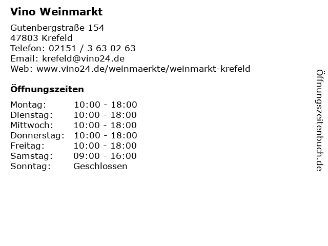 | Öffnungszeiten Vino Weinmarkt in Krefeld anzeigen | |