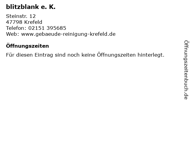 | Öffnungszeiten blitzblank e. K. in Krefeld anzeigen | |