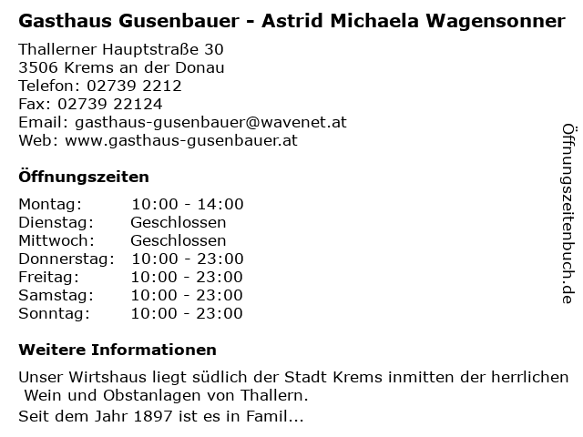 Branchen & Suchbegriffe zu Gasthaus Gusenbauer - Astrid Michaela Wagensonner:astrid, gasthaus, gusenbauer, michaela, wagensonner |
