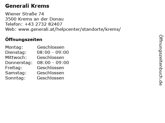 Öffnungszeiten Generali Krems in Krems an der Donau anzeigen | |