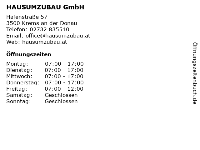 | Öffnungszeiten HAUSUMZUBAU GmbH in Krems an der Donau anzeigen | |
