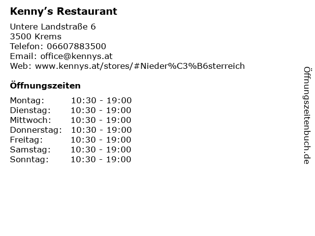 | Öffnungszeiten Kenny’s Restaurant in Krems anzeigen | |