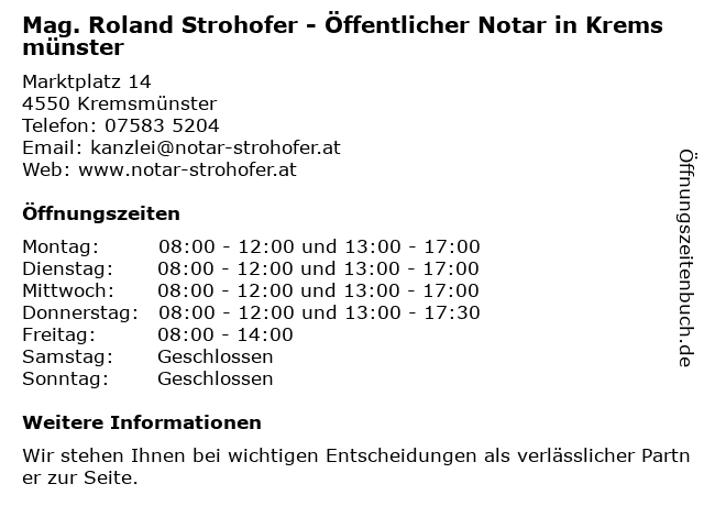 Branchen & Suchbegriffe zu Mag. Roland Strohofer - Öffentlicher Notar in Kremsmünster:kremsmünster, mag., notar, roland, strohofer, öffentlicher |