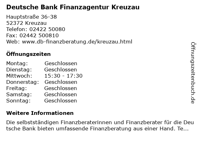Branchen & Suchbegriffe zu Deutsche Bank Finanzagentur Kreuzau:bank, bankomat, deutsche, finanzagentur, versicherungsagentur |