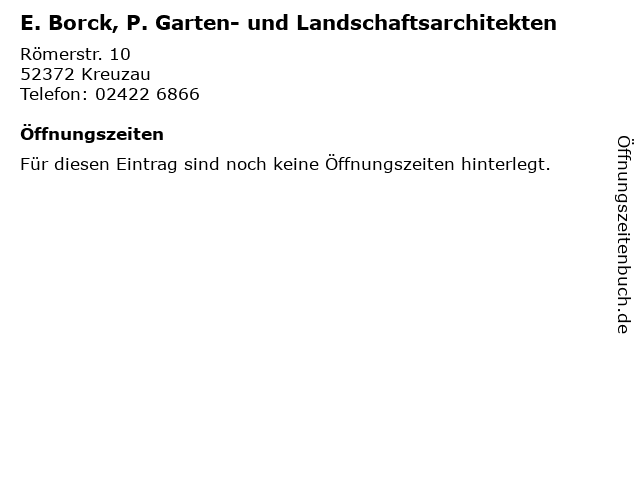 | E. Borck, P. Garten- und Landschaftsarchitekten anrufen | |