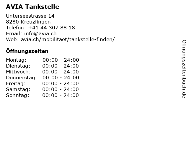 | Öffnungszeiten AVIA Tankstelle in Kreuzlingen anzeigen | |