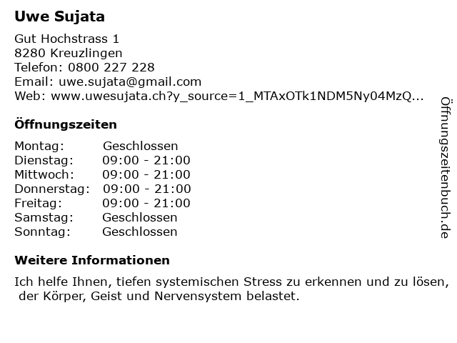 | Telefonnummer Uwe Sujata in Kreuzlingen (0800 227 228) anrufen | |