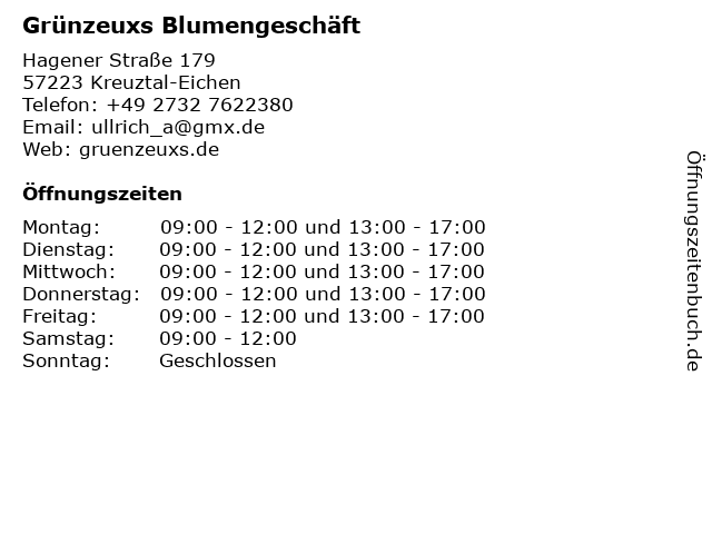 1 Hans-Günther Baldus Blumengeschäft Blütenzauber (Entfernung: 18,99 km) Schützenstr. 4, 51580 Reichshof 5 SB Dienstleistungsbüro für moderne Kommunikation Silke Brach (Entfernung: 7,63 km) Auf dem Bruch 43, 57078 Siegen 6 |