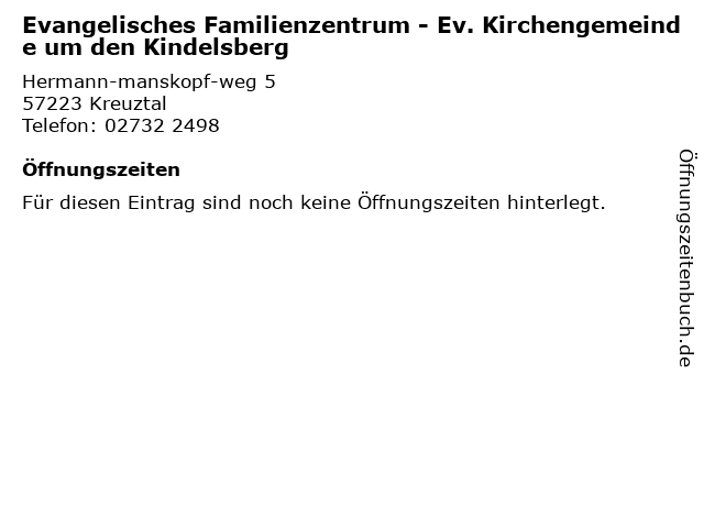 | Evangelisches Familienzentrum - Ev. Kirchengemeinde um den Kindelsberg anrufen | |