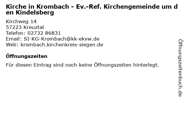 | Kirche in Krombach - Ev.-Ref. Kirchengemeinde um den Kindelsberg anrufen | |