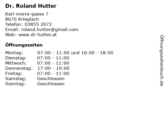| Öffnungszeiten Dr. Roland Hutter in Krieglach anzeigen | |
