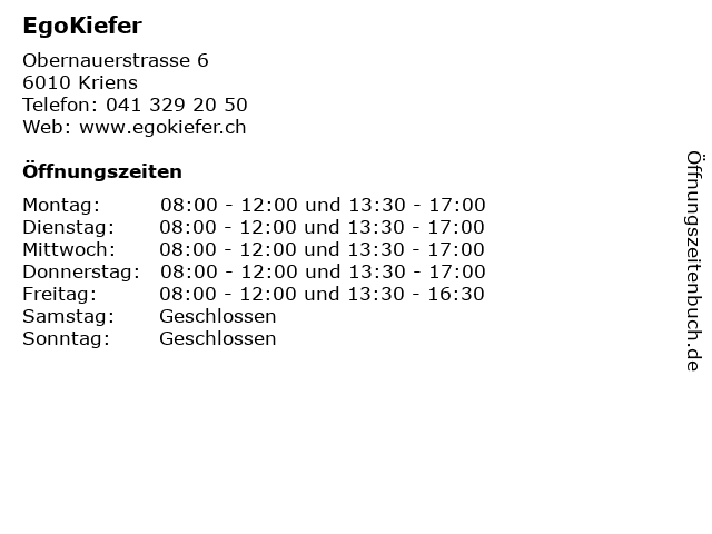 | Öffnungszeiten EgoKiefer in Kriens anzeigen | |