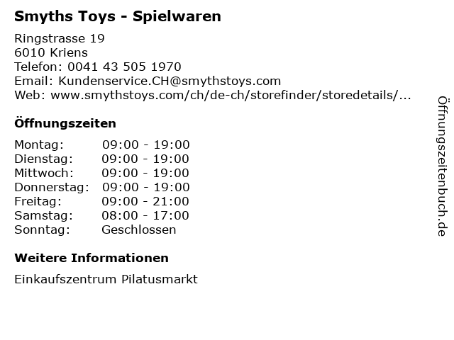 | Öffnungszeiten Smyths Toys - Spielwaren in Kriens anzeigen | |