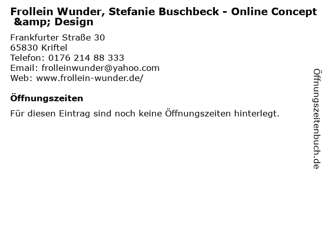 | Frollein Wunder, Stefanie Buschbeck - Online Concept & Design anrufen | |