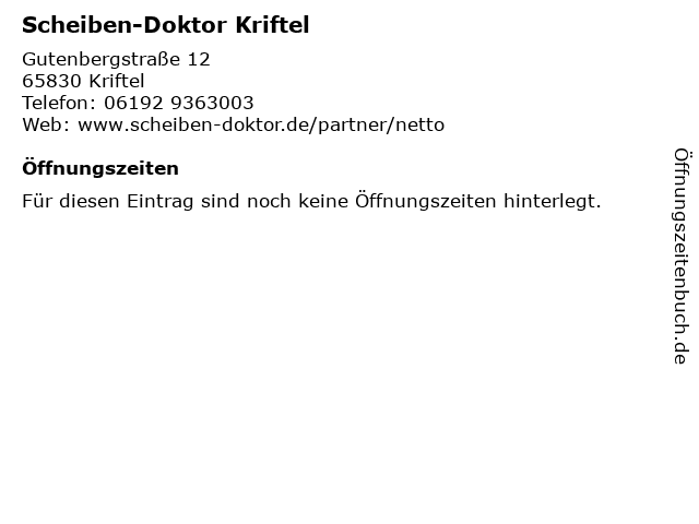 | Öffnungszeiten Scheiben-Doktor Kriftel in Kriftel anzeigen | |