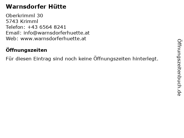 | Öffnungszeiten Warnsdorfer Hütte in Krimml anzeigen | |