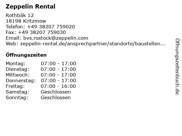 | Öffnungszeiten Zeppelin Rental in Kritzmow anzeigen | |