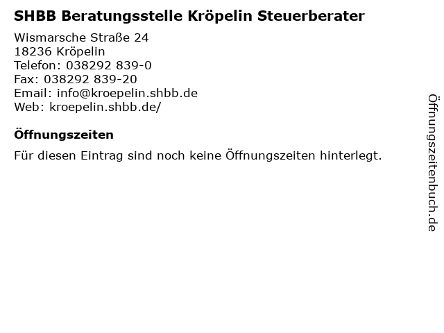 | SHBB Beratungsstelle Kröpelin Steuerberater anrufen | |