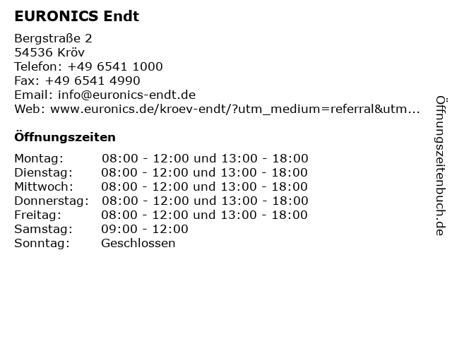 | Öffnungszeiten EURONICS Endt in Kröv anzeigen | |