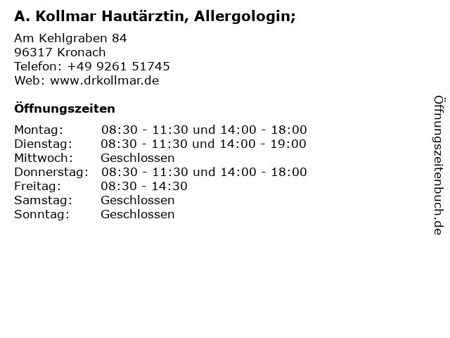 Branchen & Suchbegriffe zu A. Kollmar Hautärztin, Allergologin;:a., allergologin;, hautarzt, hautärztin, kollmar |