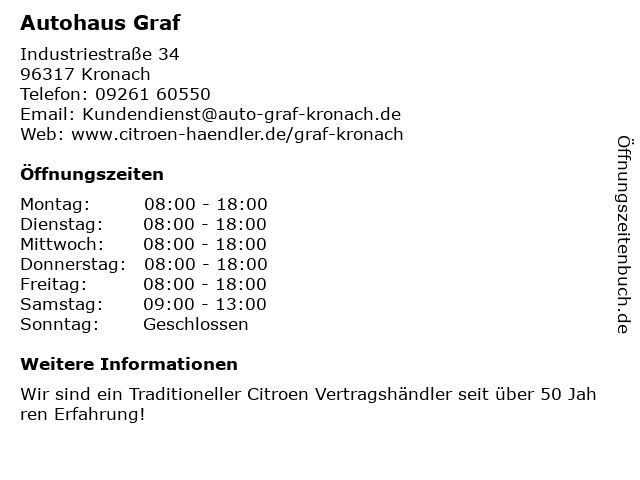Öffnungszeiten Autohaus Graf in Kronach anzeigen | |