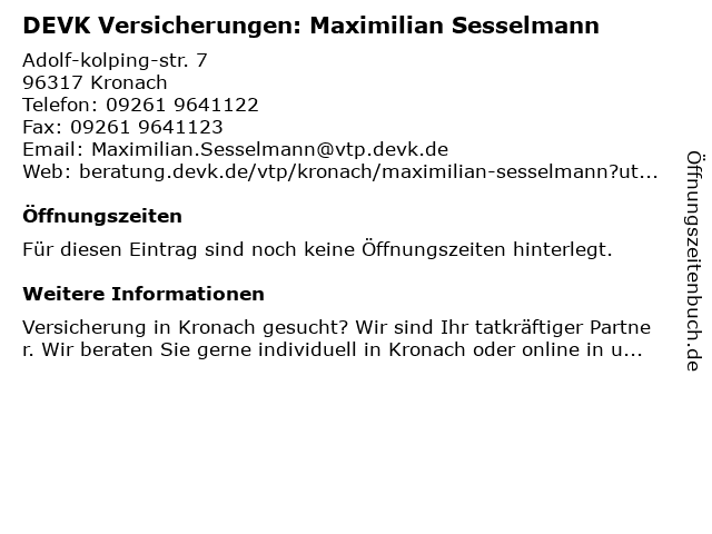 | DEVK Versicherungen: Maximilian Sesselmann anrufen | |