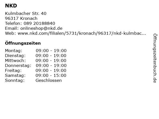 | Öffnungszeiten NKD in Kronach anzeigen | |