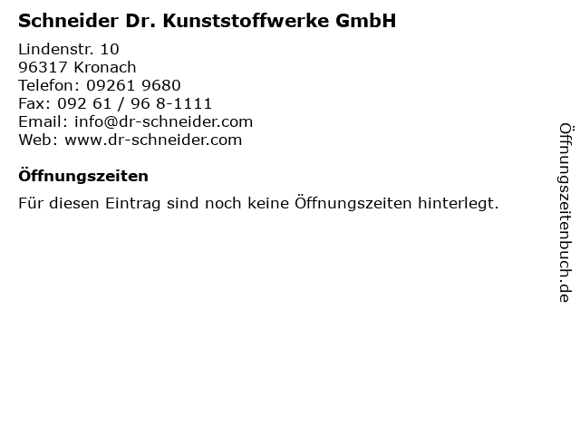 | Schneider Dr. Kunststoffwerke GmbH anrufen | |