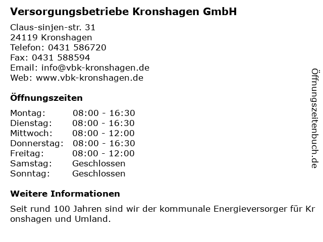 Branchen & Suchbegriffe zu Versorgungsbetriebe Kronshagen GmbH:elektrizitätswerk, kronshagen, versorgungsbetriebe, wasserwerke |