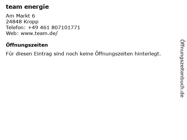 | Öffnungszeiten team energie in Kropp anzeigen | |