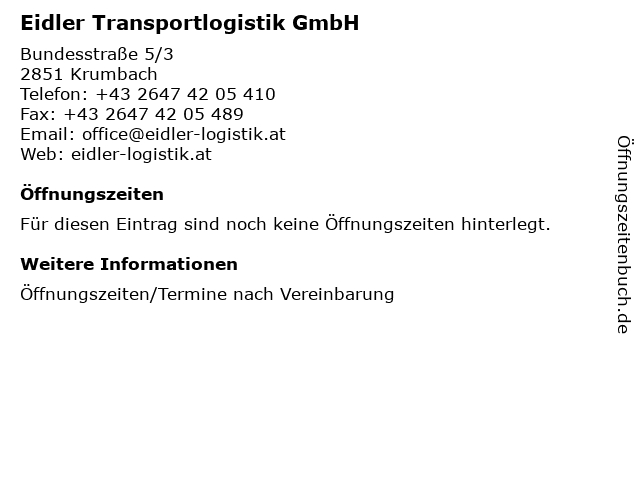 | Eidler Transportlogistik GmbH anrufen | |