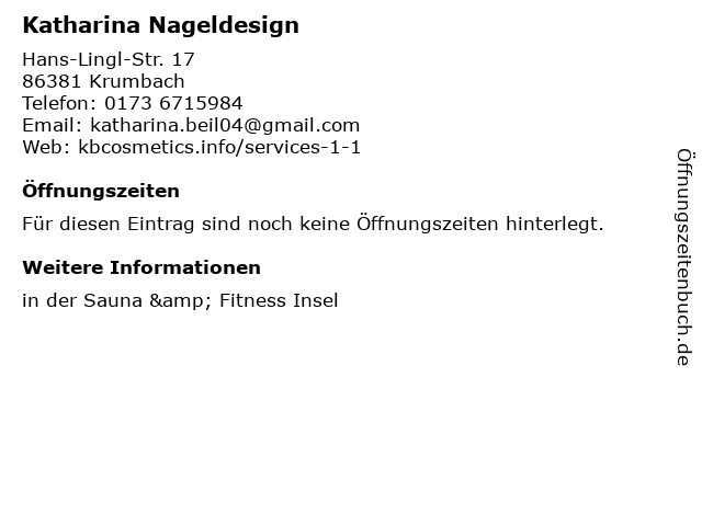 | Öffnungszeiten Katharina Nageldesign in Krumbach anzeigen | |