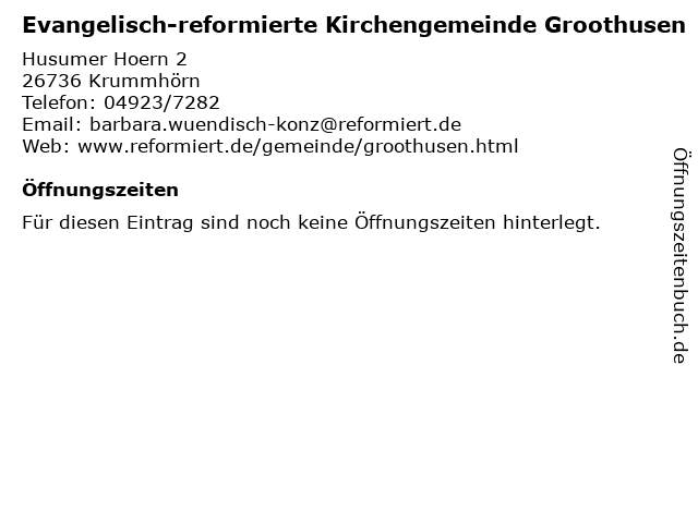 Branchen & Suchbegriffe zu Evangelisch-reformierte Kirchengemeinde Groothusen:evangelisch, gemeinde, gottesdienst, groothusen, kirche, kirchengemeinde, pfarrer, reformierte, samtgemeinde |