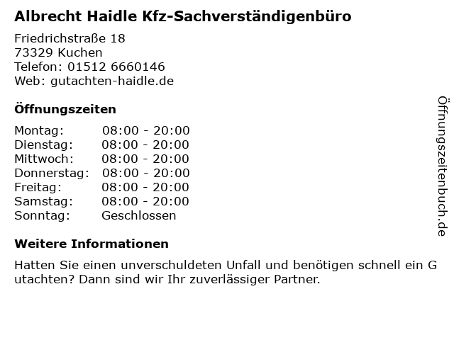 Branchen & Suchbegriffe zu Albrecht Haidle Kfz-Sachverständigenbüro:albrecht, haidle, kfz, sachverständigenbüro |