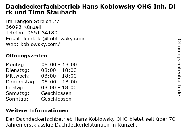 Branchen & Suchbegriffe zu Dachdeckerfachbetrieb Hans Koblowsky OHG Inh. Dirk und Timo Staubach:dachdeckerfachbetrieb, dirk, hans, koblowsky, staubach, timo |