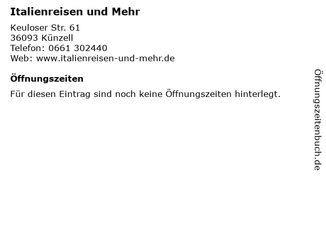 | Öffnungszeiten Italienreisen und Mehr in Künzell anzeigen | |