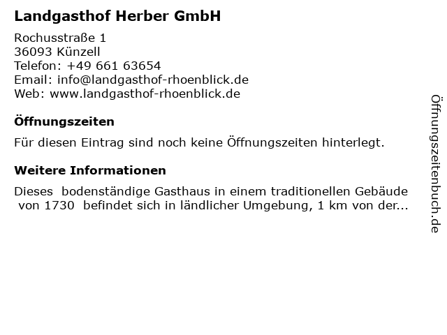 | Öffnungszeiten Landgasthof Herber GmbH in Künzell anzeigen | |