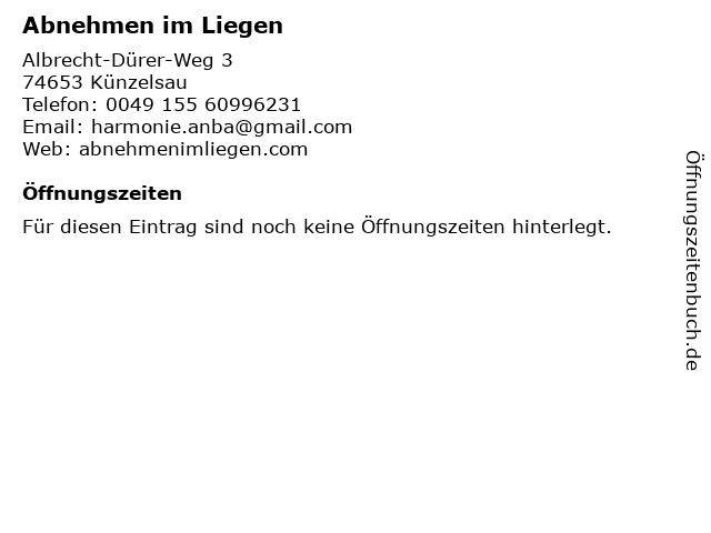 | Öffnungszeiten Abnehmen im Liegen in Künzelsau anzeigen | |