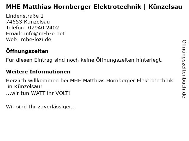 | MHE Matthias Hornberger Elektrotechnik | Künzelsau anrufen | |