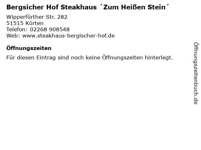 | Bergsicher Hof Steakhaus ´Zum Heißen Stein´ anrufen | |