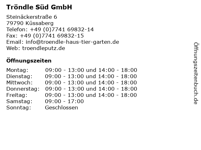 | Öffnungszeiten Tröndle Süd GmbH in Küssaberg anzeigen | |