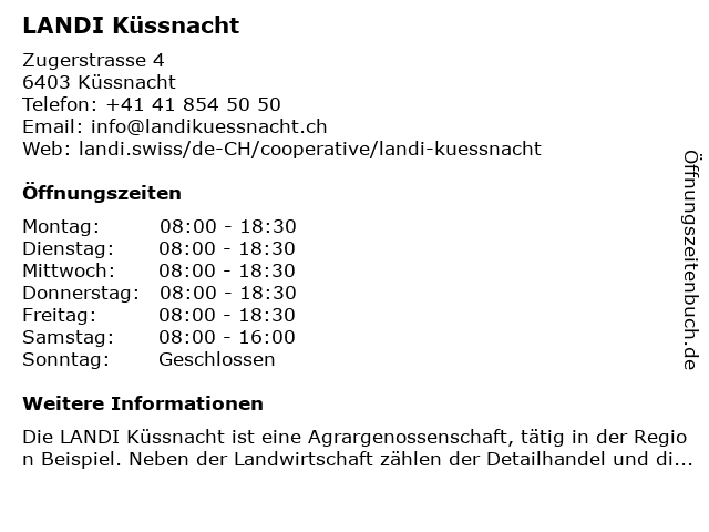 | Öffnungszeiten LANDI Küssnacht in Küssnacht anzeigen | |
